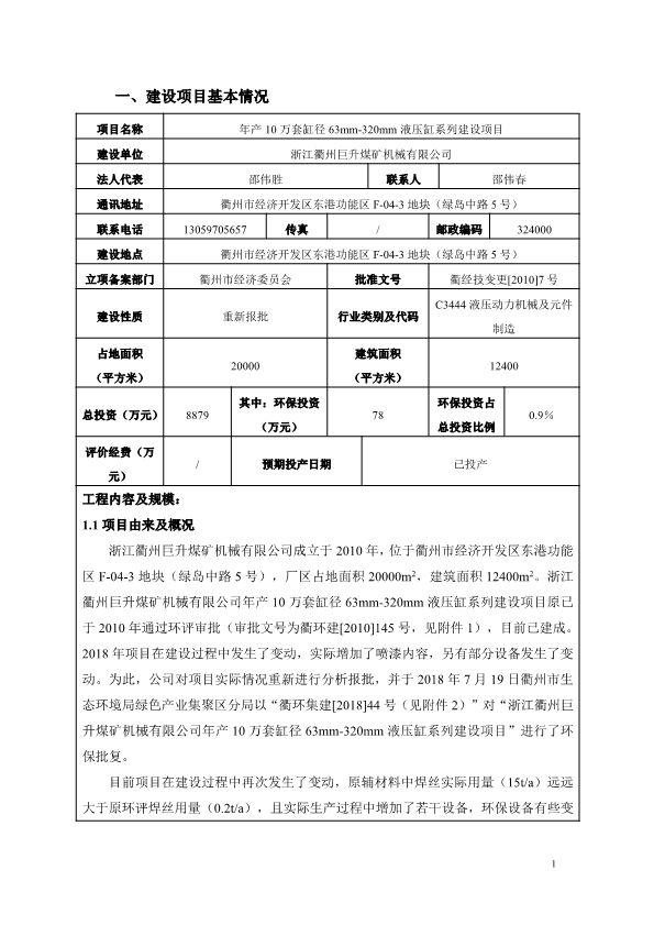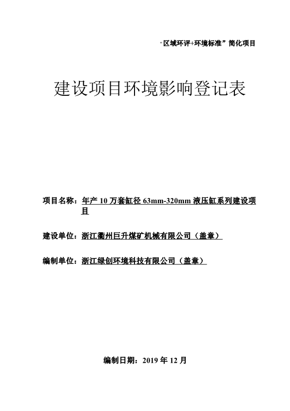 年產(chǎn)10萬(wàn)套缸徑63mm-320mm液壓缸系列建設(shè)項(xiàng)目